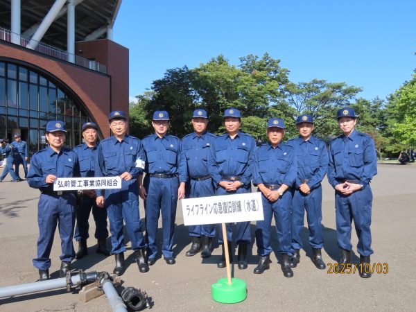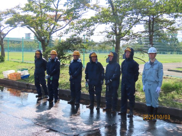 弘前市総合防災訓練へ役員7名、総務企画委員会副委員長2名、配管工6名(組合員)、職員3名が参加し訓練いたしました。